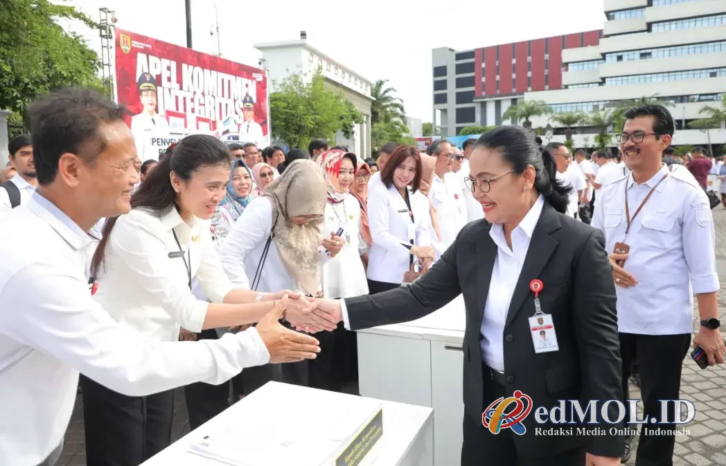 Wali Kota Semarang Agustina Wilujeng sapa ASN yang hadir dalam Apel Komitmen Integritas di Halaman Balai Kota Semarang, Jumat (2/1/2026).RedMOL SEMARANG,-