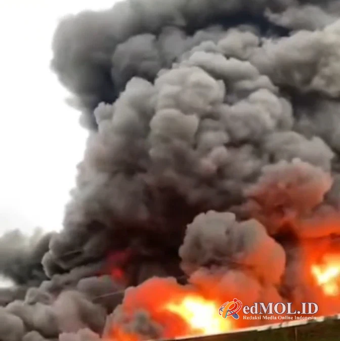 Dalam hitungan menit, kobaran api membesar dan memicu ledakan kecil akibat material produksi, sementara asap hitam pekat terus mengepul dan mengarah ke permukiman sekitar.