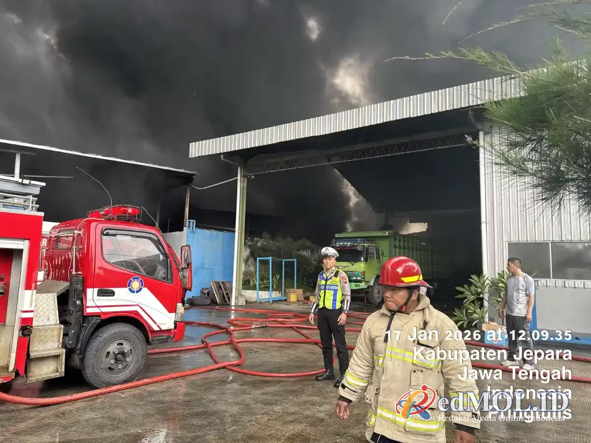 Ipda Eko Sutrisno, Kanit Turjawali Polres Jepara yang menerjukan anggotanya dan saat ini masih berada langsung di lokasi kejadian, melaporkan bahwa api pertama kali terpantau sekitar pukul 10.41 WIB, dengan titik awal diduga berasal dari bangunan belakang pabrik.